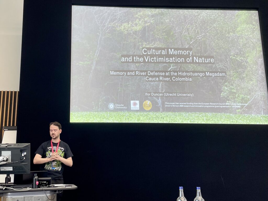 Ifor’s paper focused on the case of the Hidroituango Megadam on the Cauca River in Colombia and the resistance practices of Movimiento Rios Vivos in their challenge to displacement, the transformation of the canyon ecosystem, and the legacies of historic and ongoing forms of political violence. The Cauca was made a subject of rights in 2019, and in 2024 the river was declared a victim of historic political violence. The paper explored the implications of this ruling of river victimhood for cultural memory and the struggle for multi-species justice.