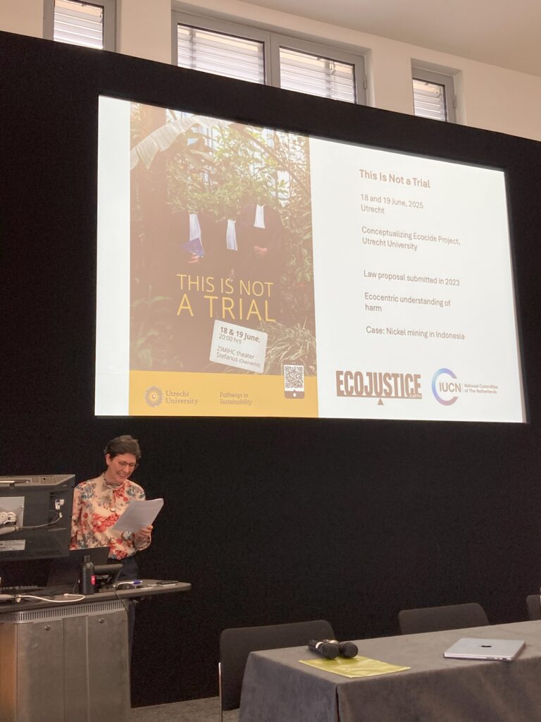 Susanne’s paper focused on tribunal theatre, a genre that has been part of the mnemonic repertoire of genocide and other atrocities, and that has seen a resurgence in the context of the ecocide discussion. Focusing on a tribunal performance she herself has been developing with a transdisciplinary team based at Utrecht University, she discussed how such a performance can give space to perspectives and voices usually excluded from the purview of the (Western) courtroom.